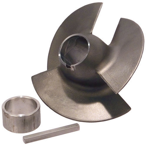 The inducer pre-impeller is a stainless steel non-shrouded small axial flow impeller that mounts in front of a standard jet drive impeller. These pre-impellers load the standard jet drive mixed flow impeller for greater low end and mid range power without sacrificing top speed.